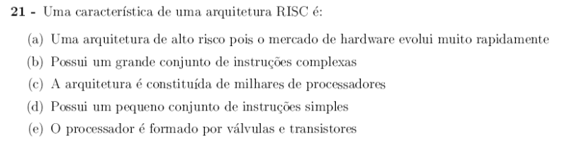 - Conjunto de Instruções Simples: a arquitetura RISC, é constituída por um conjunto de instruções simples, instruções básicas, que compõem instruções mais complexas.